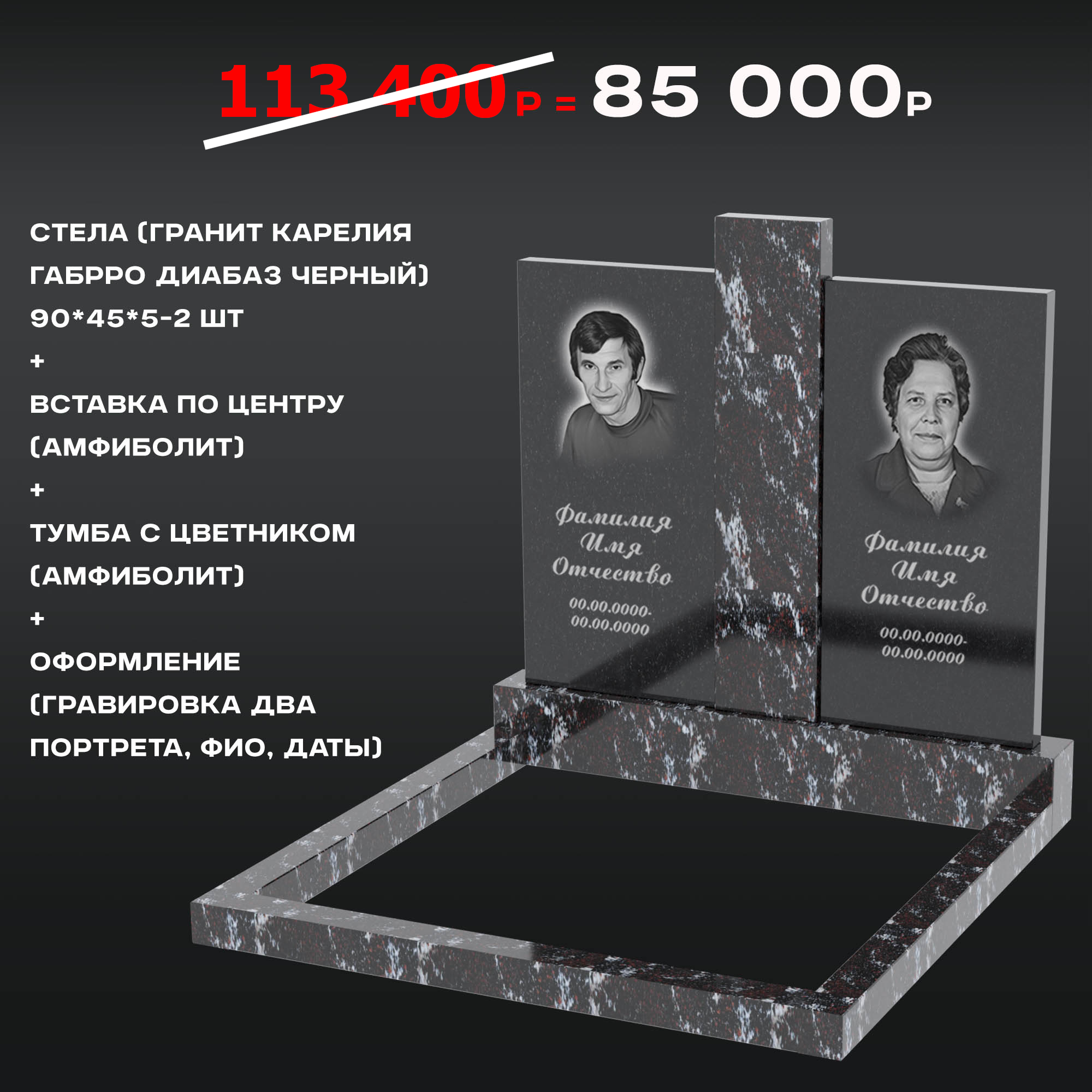Комплект памятника 90 × 45 × 5 см Амфиболит