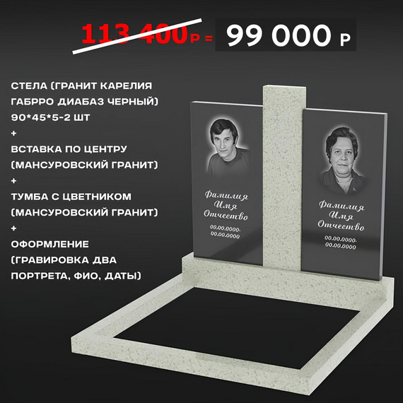 Комплект памятника 90 × 45 × 5 см Мансуровский