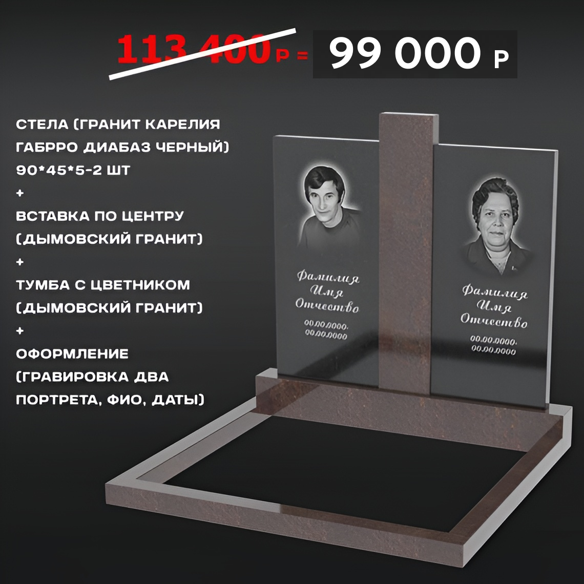Оформление (Гравировка два портрета, ФИО, даты)