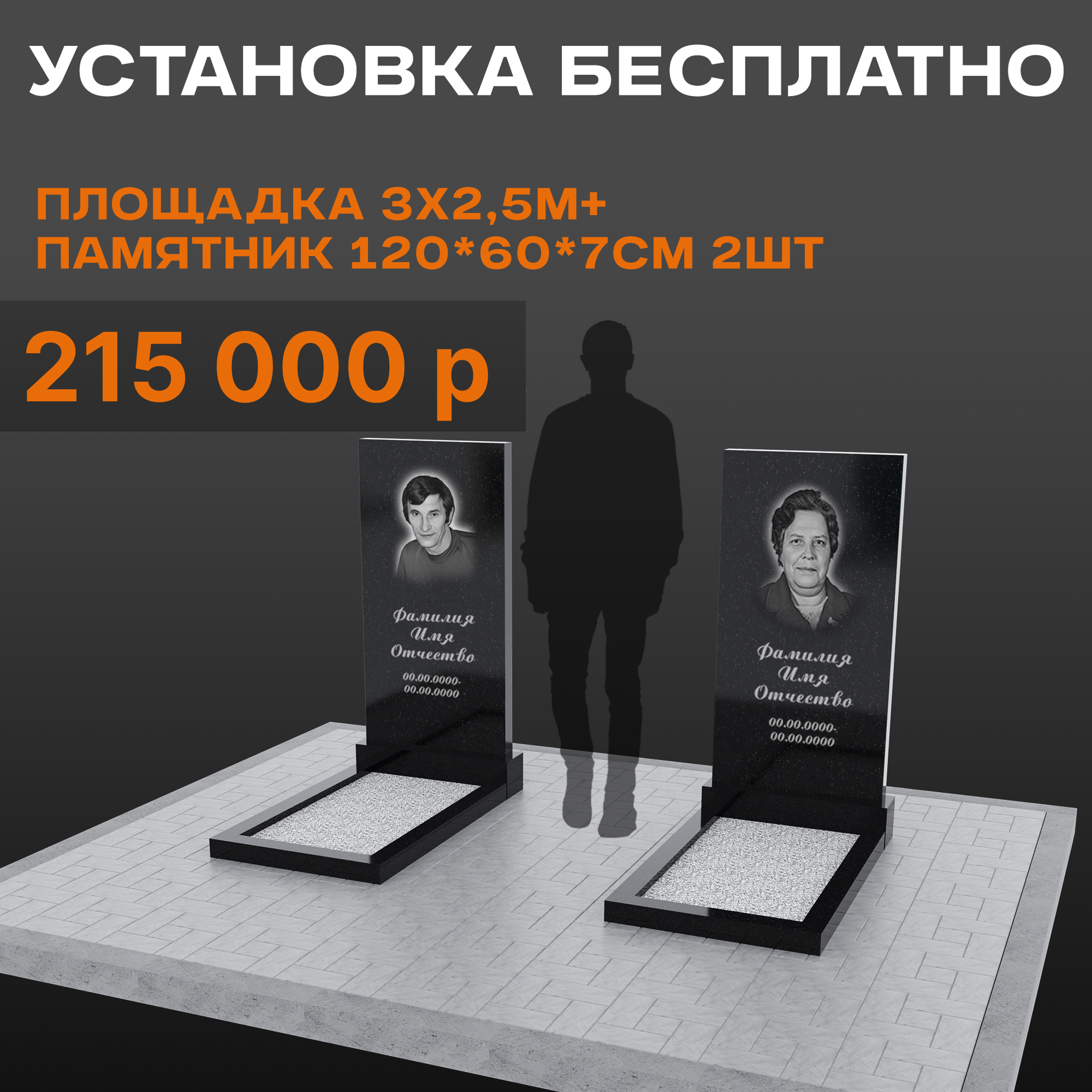 Два памятника 120 × 60 × 7 см с площадкой