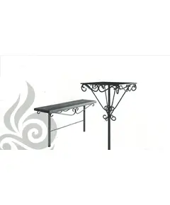 Металлический сварной стол. Столешница 50*50 см – сталь 1,2 мм Ножка 80 см – труба профильная 25*25 мм Рисунок – квадрат 10 мм Лавка металлическая сварная. Сиденье 100*30 см – металл или дерево Рисунок – квадрат 10 мм