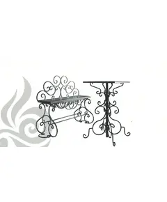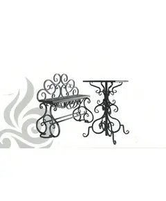 Металлический сварной стол. Столешница 50*50 см – сталь 1,2 мм Ножка 80 см – труба профильная 25*25 мм Рисунок – круг 8 мм Лавка металлическая сварная. Сиденье 100*30 см – металл или дерево Ножки – труба профильная 25*25 мм