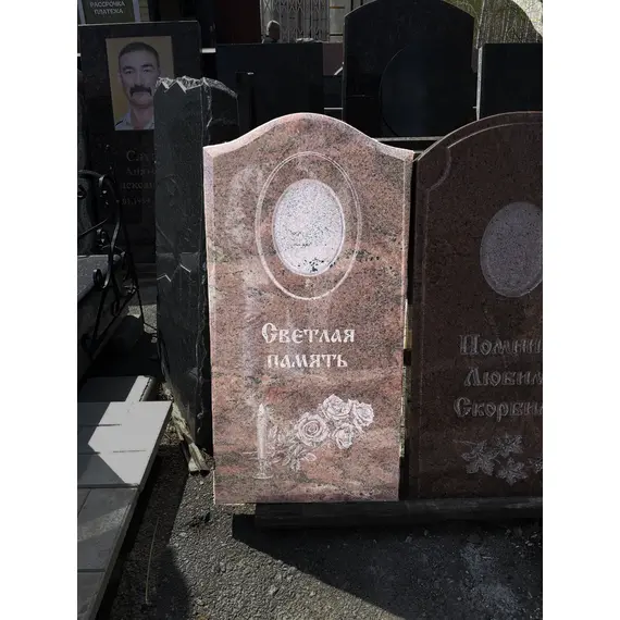 Фигурный памятник Г1 90*40*6 см с гравировкой и нишей для фото (металлоэмаль). Мультиколор гранит Индия