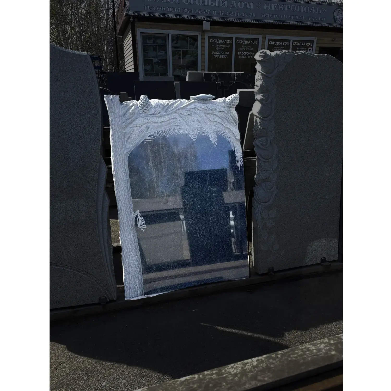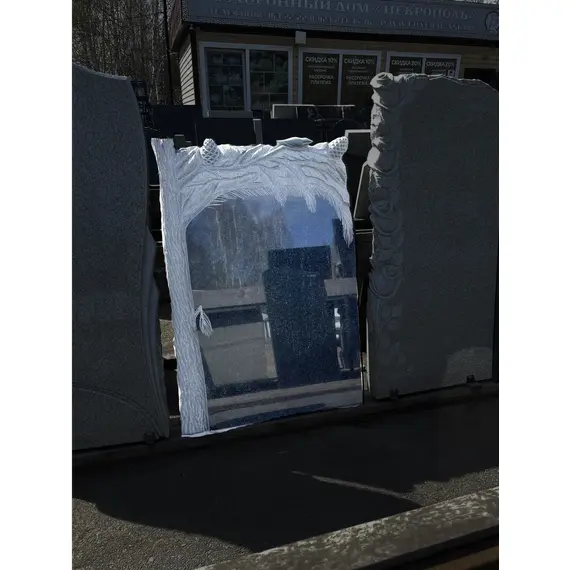 Фигурный памятник Г13 110*75*6 см барельеф кедр Карельский Габбро-диабаз