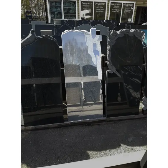 Фигурный памятник Г16 120*50*7 см барельеф крест с плащаницей Карельский Габбро-диабаз. Республика Карелия.