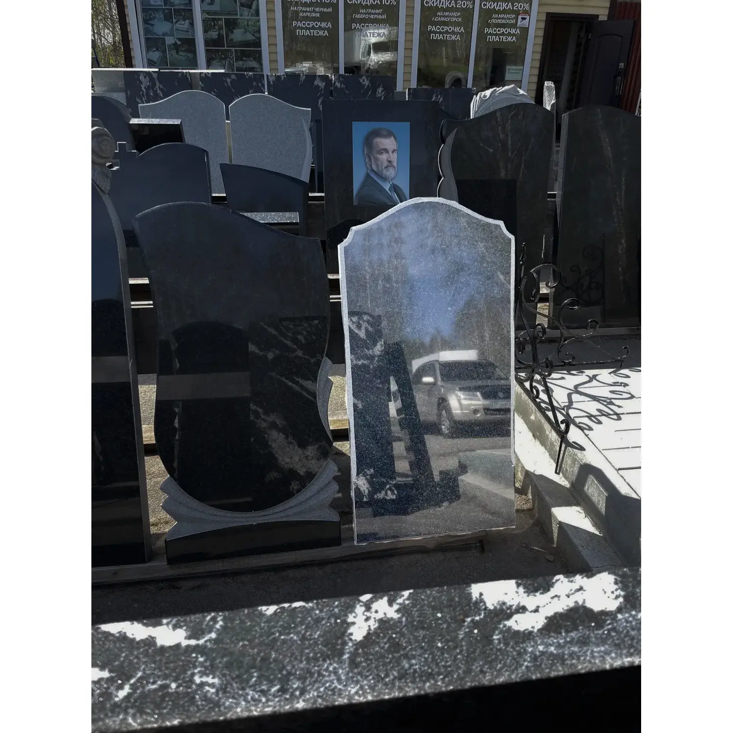 Комплект памятника Г19 100*50*5 см, Фигурный памятник Черный гранит (Габбро-диабаз)