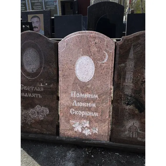 Фигурный памятник Г3 90*40*6 см с гравировкой и нишей для фото (металлоэмаль). Мультиколор гранит Индия