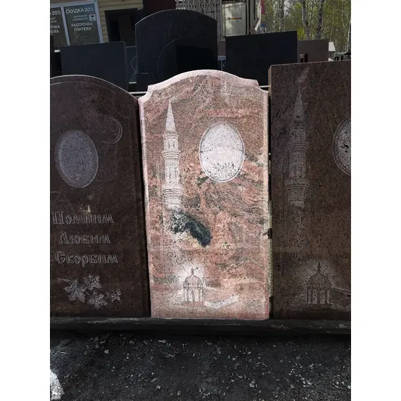 Комплект памятника Г45 90*40*6 см, фигурный, с гравировкой и нишей для фото (металлоэмаль). Гранит Мультиколор, Индия