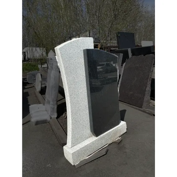 Комплект памятника Г55 100*45*5 см, комбинированный, Гранит Серый Мансур (100*45*5 см) и Черный Габбро-Диабаз (90*45*5 см)