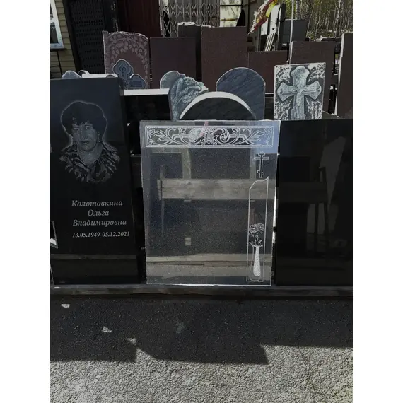 Комплект памятника Г27 70*90*5 см, с рисунком, гранит Габбро-Диабаз