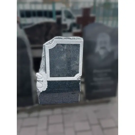 Памятник корка Габбро-Диабаз гранит 85*50 см, тыльная сторона не полирована, барельеф 2 бутона розы