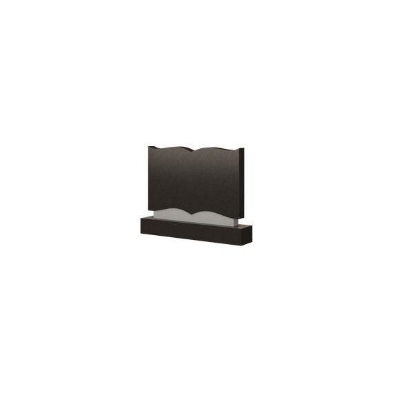 Представленную модель памятника формируют многочисленные крупные волнистые линии на вершине плиты и у ее основания, буйство которых сдерживают четкие и строгие вертикали боковых граней. Вся эта композиция размещена на некой подставке, которая контрастным акцентом выступает от подножия мемориального изделия и растворяется в глубине каменной стелы. Целостность и гармоничная сложенность сооружения наполняют его особой грандиозностью и величественностью. Данная модель надгробия органично и красиво оформит место захоронения почивших родственников и сохранит на долгие годы светлую память о них.
