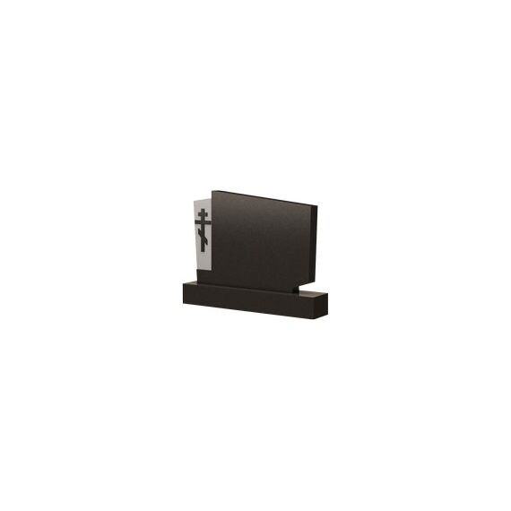 Представленная модель памятника имеет форму ассиметричного многоугольника, прочерченную прямыми четкими линиями и остроконечными углами. Конструкция мемориального сооружения целостна и монолитна, но небольшая контрастная вставка с левой стороны плиты, визуально разделяет ее на две части. На белом фоне этого выступа вырезан православный крест, который задает религиозную направленность надгробия, благодаря чему оно будет одним из лучших вариантов благоустройства могильного участка верующих людей. Такая модель памятника наиболее полно отразит личности почивших и пронесет их милые сердцу черты сквозь года.