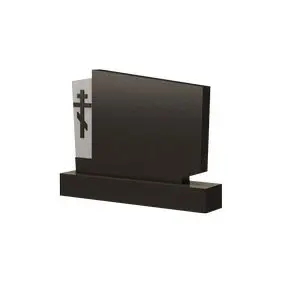 Представленная модель памятника имеет форму ассиметричного многоугольника, прочерченную прямыми четкими линиями и остроконечными углами. Конструкция мемориального сооружения целостна и монолитна, но небольшая контрастная вставка с левой стороны плиты, визуально разделяет ее на две части. На белом фоне этого выступа вырезан православный крест, который задает религиозную направленность надгробия, благодаря чему оно будет одним из лучших вариантов благоустройства могильного участка верующих людей. Такая модель памятника наиболее полно отразит личности почивших и пронесет их милые сердцу черты сквозь года.