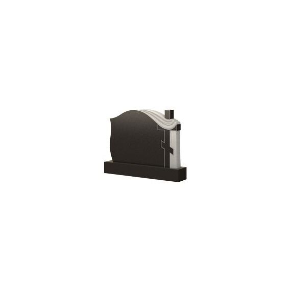 Представленная модель надгробного памятника имеет религиозную направленность и выглядит грациозно, элегантно, но в то же время сохраняет лаконичность и сдержанность. Правая боковая сторона выполнена в форме православного креста. Его образ украшает белая ниспадающая плащаница, которая также накрывает небольшую часть надгробия сверху. Так, данное мемориальное изделие не только поможет достойно обозначить захоронение ваших родных людей, ушедших в иной мир, но и показать то, что на протяжении всего жизненного пути они соблюдали и чтили традиции своей религии.