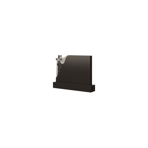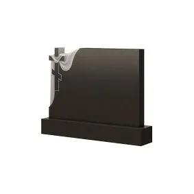 Прямоугольная форма представленного памятника украшена образом православного креста с левой стороны. С его верхней перекладины свисает плащаница, которая выполнена в белом цвете. Необходимо обратить внимание на то, что ее образ срезает острый угол надгробия, тем самым превращая классическое изделие для обозначения захоронения в конструкцию, привлекающую внимание свои элегантным и роскошным внешним видом. Таким образом, с помощью данной модели вы сможете не только отразить религиозную принадлежность покойных, но и оформить их могилу одним из наилучших способов.