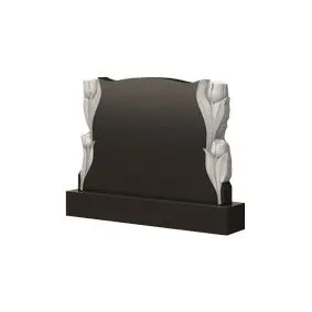 Надгробие выглядит оригинально и привлекательно, благодаря тому, что его каждая боковая сторона имеет необычное оформление. Оно представлено в виде резных объемных цветов. Эти два тюльпана не только превращают классический памятник в грациозное мемориальное изделие, но и являются символом любви и нежности, которые присутствовали между покойными. Стоит отметить, что дугообразная верхушка – это гармоничное завершение всей изящной конструкции. Несмотря на то, что цветы занимают большое количество места, основное пространство также позволяет разместить всю основную информацию об усопших.