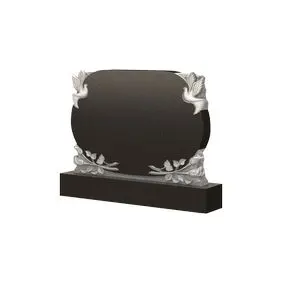 Форма надгробного памятника представлена в виде овала, который украшен различными резными элементами. Так, с каждой боковой стороны в верхней части изображен белоснежный голубь, крылья которого распахнуты и направлены в небеса. Этот образ словно олицетворяет душу усопшего, а также говорит о ее возрождении. Основание стелы оформлено прекрасными розами необычайной красоты, которые будто возложили в память о тех, чью могилу венчает данное надгробие. Кроме того, эти безукоризненные цветы в ритуальной сфере являются символом вечной любви родных и близких к ушедшим в иной мир дорогим сердцу людям.