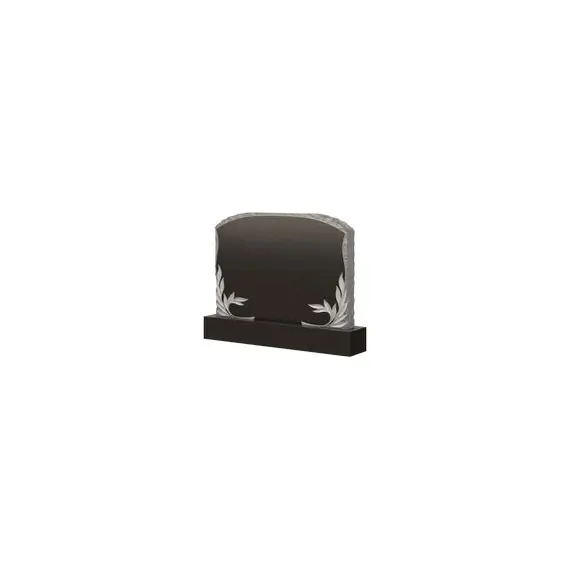Надгробие не обладает строгими лаконичными линиями, а содержит в себе неровные линии светлого цвета. Они создают между собой фигуру, отдаленно напоминающую полукруг и тем самым создают впечатление защиты и спокойствия. Привлекательность памятнику придает наличие природной тематики. Это изображение ветви лаврового дерева, гармонично вписывающиеся в общий вид конструкции и подчеркивающие сильные черты характера усопших, которые объединяли их на протяжении всего жизненного пути. Таким образом, перед взглядом предстает довольно оригинальная и символичная мемориальная конструкция, позволяющая достойно обозначить могилу родных людей.