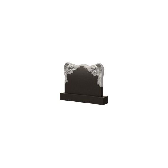 Оригинальный и привлекательный надгробный памятник. Его плавные очертания придает ему довольно миловидный образ, а долю роскоши прибавляют барельефы скорбящих ангелов, расположенных с каждого верхнего края. Эти образы не только гармонично дополняют внешний вид всей мемориальной конструкции, но и служат в качестве неких посланников, которые будут сопровождать и оберегать душу покойного в ином мире. Стоит отметить, что надгробие выполнено в черно-белом цвете, что делает его более контрастным и тем самым позволяет оформить захоронение дорогих людей одним из наилучших образов.