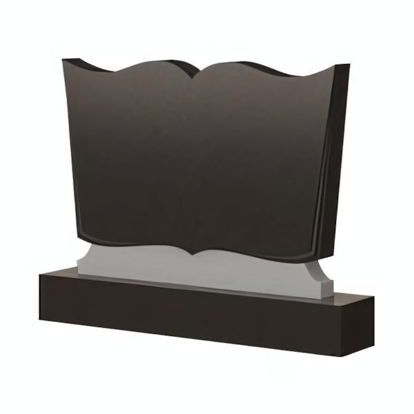 Представленная модель памятника имеет интересную фигурную форму, которая напоминает раскрытую книгу. По мимо постамента (тумбы) стела имеет художественный элемент в виде подставки под книгу. Она имеет округленную форму и светлый цвет, гармонирующий с темным надгробием и придающим ещё большую эстетику внешнему виду. Такое мемриальное изделие не только украсит собой могилку, но и поможет рассказать и сохранить память сразу о двух умерших, объединенных родственными или семейными связями.