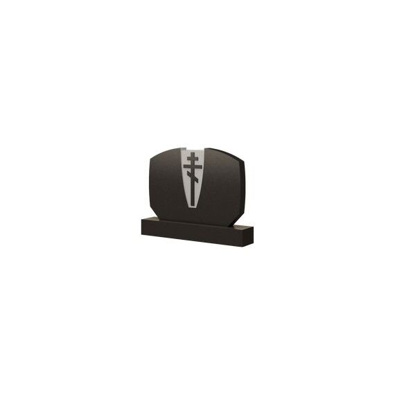 В основе данной модели памятника лежит овал. Претерпев некоторые изменения, образовалась данная форма надгробия. Вершину мемориальной стелы прочерчивает крупная ровная дугообразная линия, с небольшой прямоугольной выемкой в середине грани. У основания памятника каменная плита имеет два небольших диагональных среза по ее обеим сторонам. Благодаря таким особенностям силуэта, надгробие выглядит солидно и основательно. А контрастная вставка в центре стелы, на которой прорезан большой православный крест, определяет религиозную направленность ритуальной конструкции. Она достойно и органично оформит место захоронения усопших родных и любимых людей.
