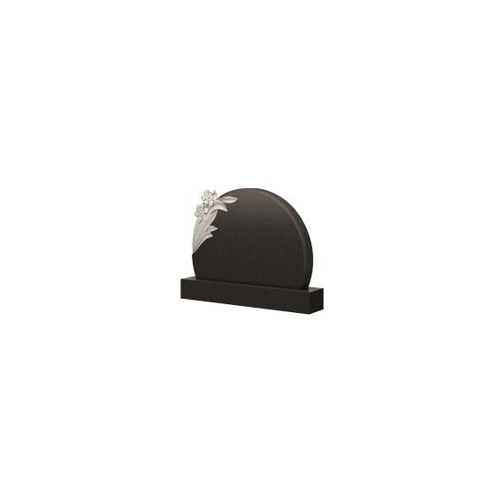 Этот памятник имеет классическую полукруглую форму, которая словно арка будет гармонично обрамлять портреты усопших. С левой стороны надгробия присутствует небольшой декор, придающий всей конструкции более грациозный внешний вид. Он представляет из себя два великолепных и чарующих резных цветка. По своему образу они напоминают лилии – символ женственности, невинности и чистоты. Надгробный памятник этой модели станет отличным акцентом на захоронении ваших дорогих и любимых людей, а также сможет отобразить самые искренние чувства любви, печали и скорби.