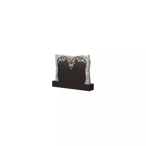 Надгробие приобретает природную тематику благодаря тому, что с каждой его боковой стороны вырезано изображение белоснежного ствола березы. Ее ветви создают дугообразную верхушку, а листья, словно развивающиеся на ветру, располагаются на основной части стелы. Таким образом они создают для портретов усопших красивое и гармоничное обрамление. Место захоронения, где центральным акцентом будет представленная модель памятника, приобретет достойный и эстетичный вид, а также позволит подчеркнуть все отличительные характера, которыми обладали покойными на протяжении всей жизни.