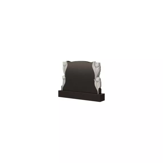 Надгробие выглядит оригинально и привлекательно, благодаря тому, что его каждая боковая сторона имеет необычное оформление. Оно представлено в виде резных объемных цветов. Эти два тюльпана не только превращают классический памятник в грациозное мемориальное изделие, но и являются символом любви и нежности, которые присутствовали между покойными. Стоит отметить, что дугообразная верхушка – это гармоничное завершение всей изящной конструкции. Несмотря на то, что цветы занимают большое количество места, основное пространство также позволяет разместить всю основную информацию об усопших.