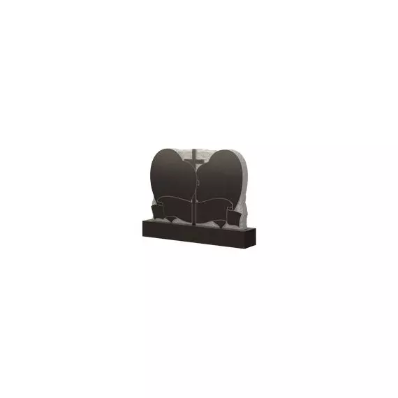 Памятник выглядит оригинально и элегантно. Такой внешний вид ему придает интересное оформление на основной части стелы. Здесь изображено два сердца, которые являются некой рамкой, предназначенной для гармоничного обрамления портретов усопших. Для размещения основной информации имеется специальное место, выполненное в виде развернутого свитка бумаги. Кроме того, надгробие отображает вероисповедание покойных, так как в центральной части находится образ православного креста. Так, привлекательное мемориальное изделие будет служить замечательным акцентом, венчающим захоронение ваших родных.