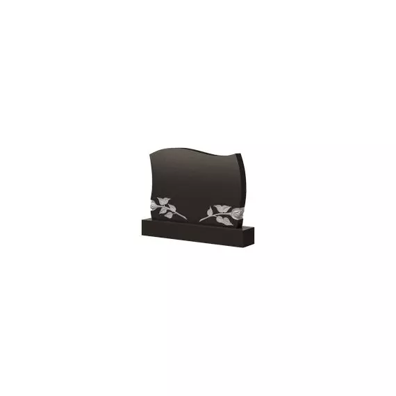 Данную модель можно отнести к ряду фигурных надгробий, так как ее боковые стороны и верхушка обладают плавной волнообразной чертой. Но в отличие от памятников такого типа, здесь присутствует превосходное и очаровательное украшение у основания стелы. Эти две необычайно красивые розы способны подчеркнуть милые черты лиц усопших и ту нежность, которая при жизни испытывалась в отношении друг с другом. Такое оформление придает всей мемориальной конструкции более грациозный и изящный внешний вид, а также помогает отобразить скорбь, печаль и горечь близких людей, не смирившихся с утратой.