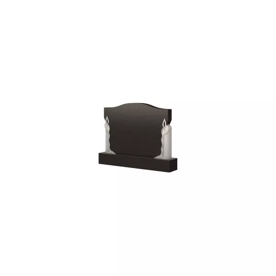Затейливая и колоритная модель памятника, представленная переплетением и четких ровных линий боковых граней, и плавных изгибов, прорисовывающих ее верхушку. Красивым контрастным акцентом представлен декоративный узор, оформляющий лицевую сторону надгробия — две большие ярко горящие свечи. От яркого пламени и жара они плавятся, изливая свой горячий воск к подножию мемориального сооружения. Памятник такой формы наполнен теплотой, чуткостью, любовью и уважением к почившим любимым и дорогим людям. Он станет бесценным венцом места захоронения, сохранив в памяти их добрые и светлые образы на многие годы.