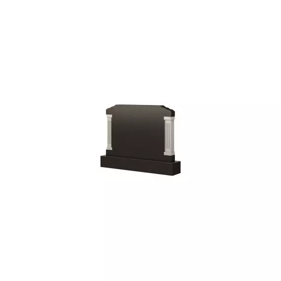 Величественная и солидная по своей форме и содержанию модель памятника. Силуэт надгробия представлен классической геометрической фигурой – прямоугольником, который наделяет мемориальное сооружение строгостью и лаконичностью. Массивные колонны, прорезанные по бокам плиты элегантно оформляют лицевую сторону стелы, контрастно выделяясь на общем фоне сооружения. Верхние углы модели срезаны и прочерчены острыми ломанными линиями. Памятник такой формы подчеркнет значимость почивших, а также отразит особое почтение и уважение к ним. Место захоронения, оформленное данным надгробием, будет выглядеть красиво и достойно.