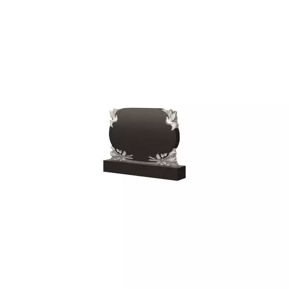 Форма надгробного памятника представлена в виде овала, который украшен различными резными элементами. Так, с каждой боковой стороны в верхней части изображен белоснежный голубь, крылья которого распахнуты и направлены в небеса. Этот образ словно олицетворяет душу усопшего, а также говорит о ее возрождении. Основание стелы оформлено прекрасными розами необычайной красоты, которые будто возложили в память о тех, чью могилу венчает данное надгробие. Кроме того, эти безукоризненные цветы в ритуальной сфере являются символом вечной любви родных и близких к ушедшим в иной мир дорогим сердцу людям.