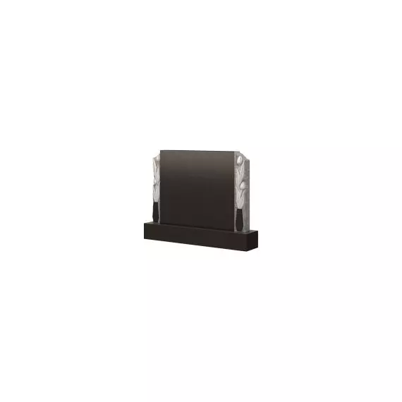 Внушительная и вековечная модель памятника, созданная по всем ритуальным канонам. Вершина и боковые грани прорисованы четкими ровными линиями. Верхние углы имеют неровные скосы, которые придают надгробию некоторую строгость и солидность. Разбавляют общий сдержанный вид красивые резные изображения двух букетов тюльпанов в вазах, расположенных по бокам мемориальной стелы. Такой памятник является воплощением и безмерной скорби, и самой теплой и нежной любви к почившим дорогим и близким людям. Он достойно увенчает место их последнего пристанища, сохранив на многие годы воспоминания и добрые, светлые образы усопших.
