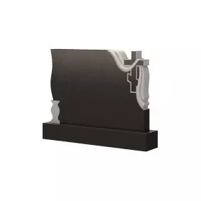 Поразительная и роскошная модель памятника, в основании которой заложен правильный прямоугольник. Вершину надгробия прорисовывает четкая прямая линия. Верхний правый угол выполнен в виде резного шестиконечного креста, украшенного белой плащаницей. Нижнюю часть мемориальной стелы с правой стороны декорирует изображение вазы. Все в данном сооружении очень красиво и гармонично, каждый элемент дополняет друг друга, создавая целостное органичное изделие. Памятник такой формы достойно оформит семейную могилу и придаст захоронению эстетический и ухоженный вид.