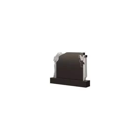 Представленная модель памятника является еще одним вариантом ритуальной классики, выполненной по всем ее канонам. С правой стороны мемориальную стелу декорирует резное изображение восьмиконечного православного креста, задрапированного белоснежными складками ниспадающей к подножию надгробия плащаницы. Слева композицию мемориального сооружения дополняет фигура скорбящей женщины, в силуэте которой четко просматривается вся та боль и тоска от потери близкого и любимого человека. Такой памятник будет достойным оформлением родового могильного участка.