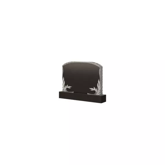 Надгробие не обладает строгими лаконичными линиями, а содержит в себе неровные линии светлого цвета. Они создают между собой фигуру, отдаленно напоминающую полукруг и тем самым создают впечатление защиты и спокойствия. Привлекательность памятнику придает наличие природной тематики. Это изображение ветви лаврового дерева, гармонично вписывающиеся в общий вид конструкции и подчеркивающие сильные черты характера усопших, которые объединяли их на протяжении всего жизненного пути. Таким образом, перед взглядом предстает довольно оригинальная и символичная мемориальная конструкция, позволяющая достойно обозначить могилу родных людей.