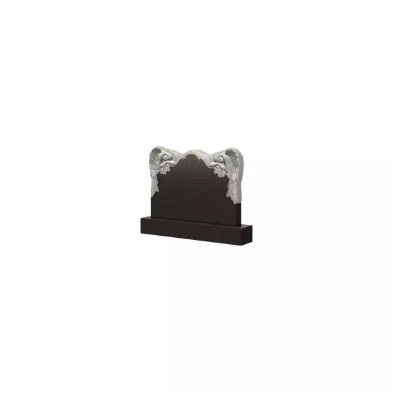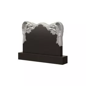 Оригинальный и привлекательный надгробный памятник. Его плавные очертания придает ему довольно миловидный образ, а долю роскоши прибавляют барельефы скорбящих ангелов, расположенных с каждого верхнего края. Эти образы не только гармонично дополняют внешний вид всей мемориальной конструкции, но и служат в качестве неких посланников, которые будут сопровождать и оберегать душу покойного в ином мире. Стоит отметить, что надгробие выполнено в черно-белом цвете, что делает его более контрастным и тем самым позволяет оформить захоронение дорогих людей одним из наилучших образов.