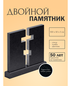 Две равнозначные стелы и небольшой куб – вот три составляющих данной модели памятника, расположенных на общем длинном основании. Несмотря на такое разделение вся конструкция сооружения имеет гармоничный и целостный вид. Силуэт надгробия прорисовывают и ровные прямые грани, и плавно изогнутые...