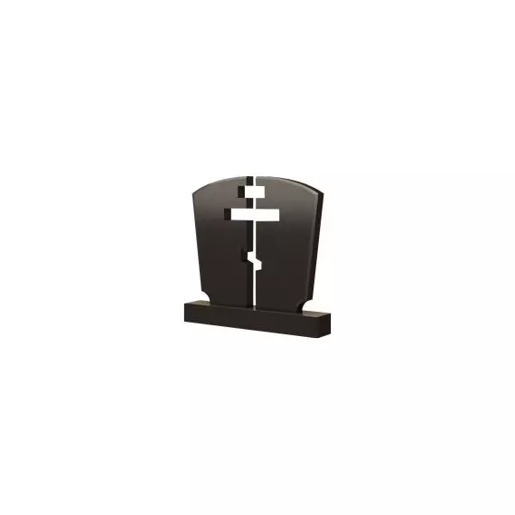 Интересная в своем исполнении модель памятника, которая станет оригинальным и достойным вариантом обозначения семейного могильного участка. Общий силуэт мемориального изделия образует перевернутая трапеция со дугообразной верхушкой и небольшими полукруглыми выемками по краям у основания надгробия. В середине сооружения выполнено резное изображение православного креста, который показывает религиозную направленность мемориальной композиции. Благодаря этому можно подчеркнуть особое отношение упокоенных к вероисповеданию. Место захоронения, где будет установлен такой памятник, приобретет солидный и почетный вид.