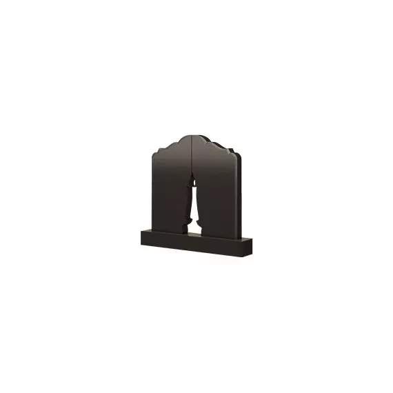 Изящная фигурная огранка в переплете в четкими ровными линиями и резным изображением формируют данную модель памятника. Конструкция сооружения состоит из двух независимых и в то же время взаимосвязанных стел, размещенных на одном общем основании. Прямые вертикали боковых сторон наделяют надгробие строгостью и лаконичностью, а интересная узорная верхушка придает некоторую элегантную аристократичность. Красивым и органичным дополнением является вырезанное в камне изображение свечи – символа Божьей благодати и внутреннего света. Оно добавляет сооружению особу эмоциональность, позволяя полно и многогранно раскрыть всю гамму чувств родных к почившим близким и любимым людям.