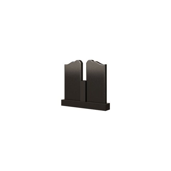 Сдержанность и изысканность переплелись воедино в данной модели памятника, явив неповторимую и красивую каменную конструкцию. Композицию сооружения составляют три элемента, расположенные на одном большом основании – две стелы и невысокий столбик в форме объемного прямоугольника. Боковые стороны обеих плит прочерчены параллельными вертикальными линиями, устремленными от подножия памятника ввысь. Вершину каждой стелы венчает красивая изящная линия, похожая своими очертаниями на воздушное облако, которое мягко обнимает камень. С помощью памятника такой формы можно достойно обозначить последнее пристанище дорогих и любимых людей.