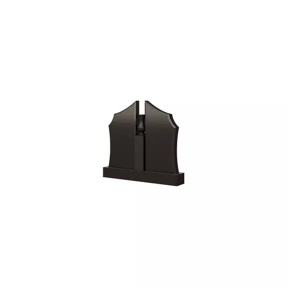 Отличная модель памятника для обустройства родового могильного участка на кладбище. Конструкция сооружения сформирована двумя равнозначными стелами, имеющими затейливые волнистые верхушки и, расположенными между ними, столбиком с небольшой вазой. Сосуд выполняет не только декоративную, но и практичную функцию – в него можно поставить или посадить цветы, те самые, которые любили покойные. Мемориальное изделие такой формы достойно обозначит захоронение почивших близких и дорогих людей, сохранив добрую и вечную память о них в камне на долгие годы.