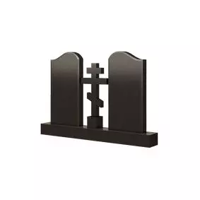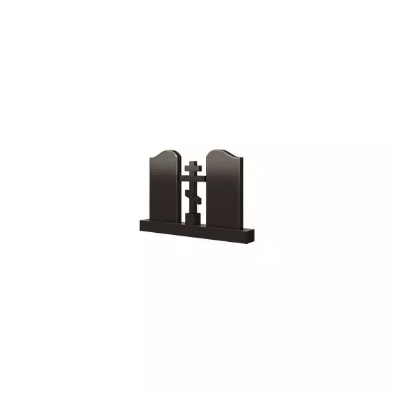 Конструкция представленной модели памятника представлена двумя равнозначными плитами и крупным православным крестом, расположенном в центральной части сооружения. В основании стел заложены правильные прямоугольники, о чем говорят четкие вертикали боковых сторон, а верхушки прорисованы крупными волнообразными линиями, которые придают некоторую изысканную элегантность плитам. Распятие размещено на небольшом кубике и как бы возвышается и парит над всей конструкцией. Мемориальное изделие такой формы станет красивым венцом любого семейного захоронения.