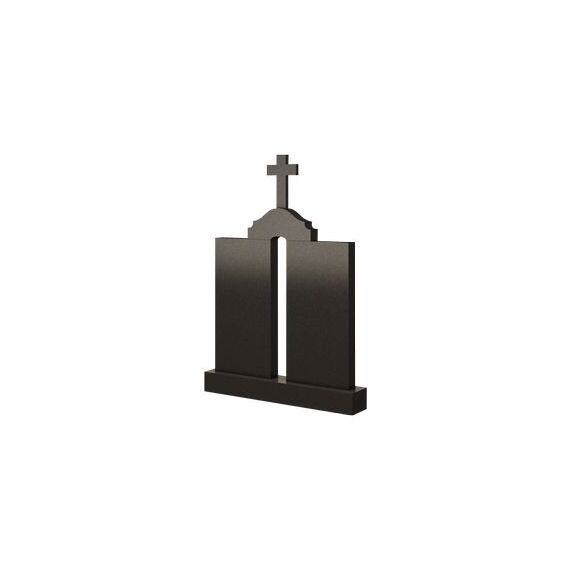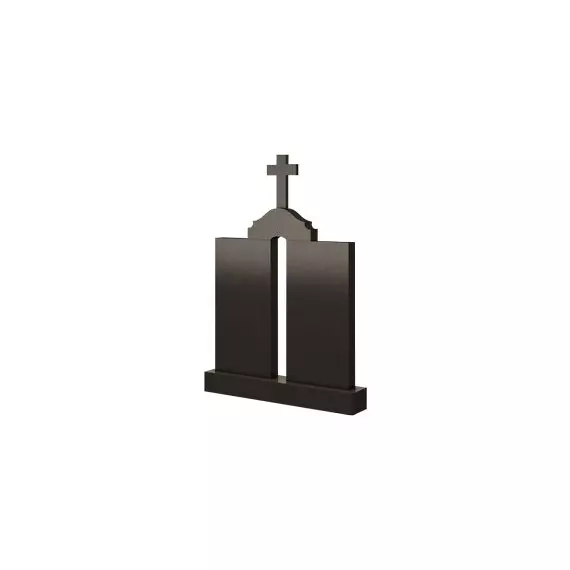 Интересная в своем воплощении модель памятника, напоминающая своими очертаниями арку – символ святости, своеобразного прохода между мирами, перерождения. Основную часть данной мемориальной конструкции составляют две плиты в форме прямоугольника. Они расположены на небольшом расстоянии друг от друга, но имеют единое основание, благодаря чему изделие целостно и гармонично. На вершинах надгробных стел возвышается крест, установленный на некотором постаменте. Распятие придает религиозный характер всей конструкции и позволит отразить особое отношение почивших к религии и к вере.
