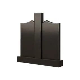 Эта модель памятника представлена тремя составляющими элементами – двумя крупными стелами и массивным столбом – которые, тем не менее формируют целостную и органично сложенную конструкцию. Плиты выходят на передний план сооружения, благодаря чему основной акцент приходится на образы покойных, в которых раскрываются особенности их характеров и другие важные и значимые аспекты. Силуэты стел достаточно просты и сдержаны – ровными, прямыми линиями прочерчены их боковые стороны и изящной, слегка скругленной чертой, выступает сама вершина. Место захоронения, на котором будет установлен такой памятник наполнится особым величием, в котором отразятся почтение и уважение к усопшим родным людям.