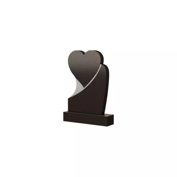 Необычайно красивая и элегантная модель памятника, сформированная крупным сердцем, расположенном на некой подставке. Силуэт надгробия прорисован и плавными изящными, и строгими прямыми линиями, которые образую затейливый контур. Контрастным акцентом проходит белая вставка, выходящая из левой боковой грани и, мягко обнимая нижнюю половину сердца, устремляющаяся вверх. В мемориальном сооружении такой формы заложен глубокий внутренний смысл и особый символизм – сердце олицетворяет собой нежность чувств, взаимную любовь и преданность. Благодаря такому наполнению, памятник выразительно подчеркнет то эмоциональное состояние, которым наполнены сердца родных к почившим близким людям.