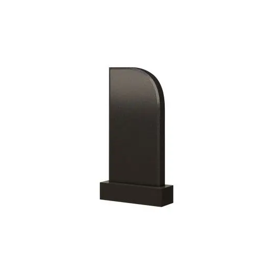 Практически стандартная классическая модель прямоугольного памятника, имеющая небольшое отличие от типовой формы. Верхний правый угол стелы имеет незначительный дугообразный срез, который плавно переходит в ровную и четкую грань, неизбежно устремленную вниз к основанию надгробия. Левый верхний угол, прямой и острый, как бы подчеркивает сдержанную форму стелы, придавая ей легкую нотку деловитой официальности и вместе с тем скромной изысканности в своих очертаниях. Оформленный таким памятником, могильный участок будет иметь достойный вид, а само каменное изделие сохранит в себе вечную память об усопшем.
