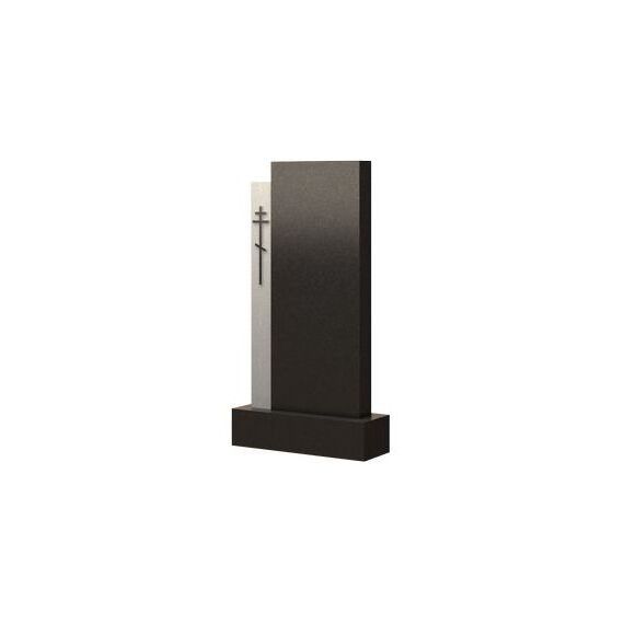 Одна из стандартных моделей памятников, имеющая религиозную направленность. Надгробная стела представляет собой цельное сооружение, состоящее из двух контрастных прямоугольников разной величины – черного и белого. Белая часть оформлена резным православным распятием, гармонично дополняющим общую композицию сооружения. Простота и лаконичность прямых линий, формирующих силуэт памятника, придает наполняет его внешним спокойствием и умиротворением. Установленный на месте захоронения, он будет достойным венцом последнего приюта дорогого и горячо любимого человека.